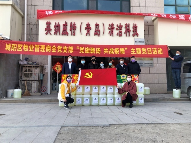 面对会员企业严重的防护物资短缺,物业商会发出支援请求,在区政协、区住建局的支持下,在区工商联领导的多方协调下,定向捐助了物业商会2000个口罩,同时商会经多方筹措,在2月3日为商会会员企业免费发放了5000公斤消毒液和口罩等防疫物资;为进一步调动商会企业、从业人员的防疫工作积极性,商会党支部组织支部党员及入党积极分子于2月2日进行捐款,共收到捐款17200元,并于2月12日携手商会共同开展“党旗飘扬、共战疫情”主题党日活动,将捐款购买的疫情防控物资分发给商会各企业。