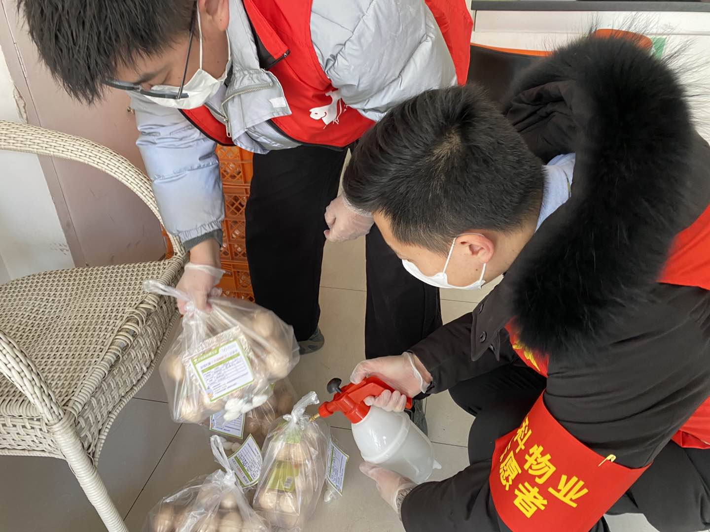 从供应商的货品分装、物流运输,到社区接收后的仓储消毒和短驳配送,依托业主住这儿App全流程密切追踪,严格监测操作人员体温等健康状况,每一份货品都有“身份证”。此外,管家还为每位居民准备了酒精棉球包,方便收货后进行二次消毒。