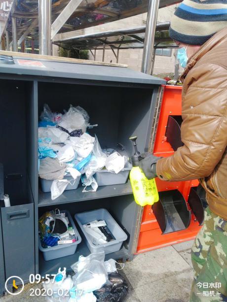 疫情防控期间对废弃口罩的处理也不能马虎,垃圾清运团队在保证做好小区生活垃圾分类清运工作的同时,毅然承担起废弃口罩的消毒清运工作,按照“先消毒、后打包”的工作流程,做到了不让口罩成为病毒散播的传染源。