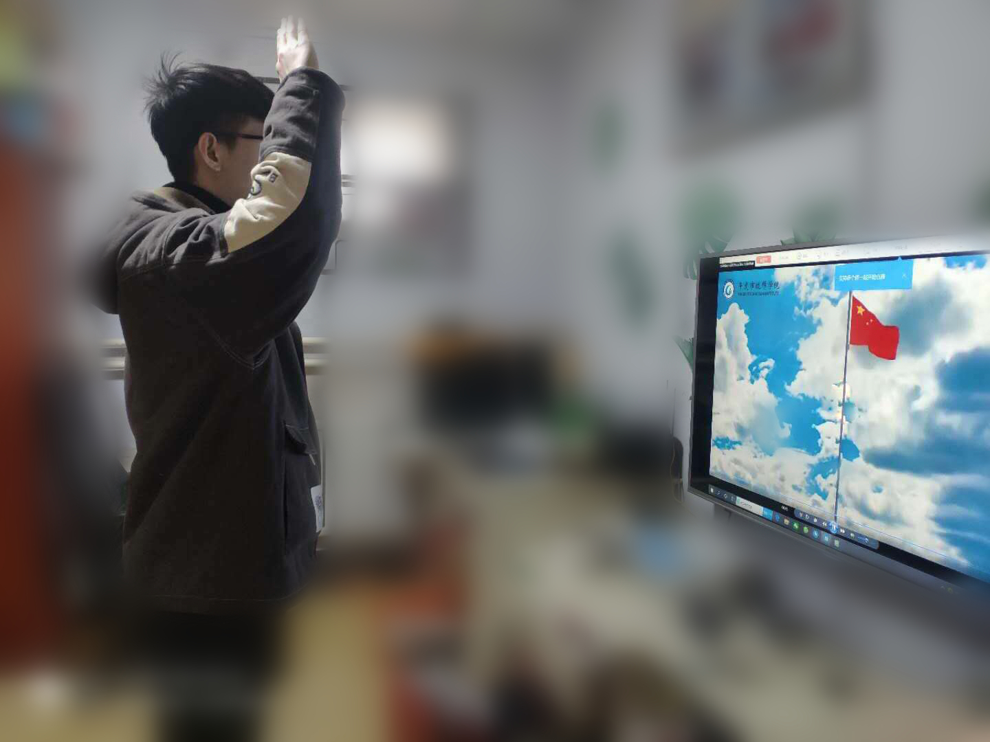 3月2日,在市人社局的指导下,平度市技师学院全校师生“云”端相约,通过网络平台开启了新学期第一课。上午8时,平度市技师学院师生通过电脑、平板、手机等隔空相聚,当《义勇军进行曲》奏响的那一瞬间,大家面向屏幕中冉冉升起的五星红旗,肃立行礼,以一种特殊方式,共同开启2020年春季学期的新篇章。副院长李孟磊通过网络为全院师生上了一堂以“战胜疫情技能报国”为主题的开学第一课。李院长以疫情时期珍爱生命、有所作为为切入点,希望同学们树立以技能报国的远大理想,培养正确的世界观、人生观、价值观,做一个心存敬畏、知晓感恩、刚毅坚卓,有责任、有担当的学子。