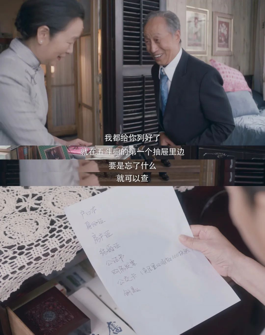 这对恩爱了一辈子的老夫妻,在本该安享晚年之际,却因宋爷爷身患癌症而提前面临分别。在最后的这段时光里,他们都在尽全力为对方考虑着。他事无巨细地为她打算着:房子要有什么设施、小区治安如何、交通便不便利……“我家美廷,是小孩脾气一根筋,把这个钱留下来,给她养老。”
