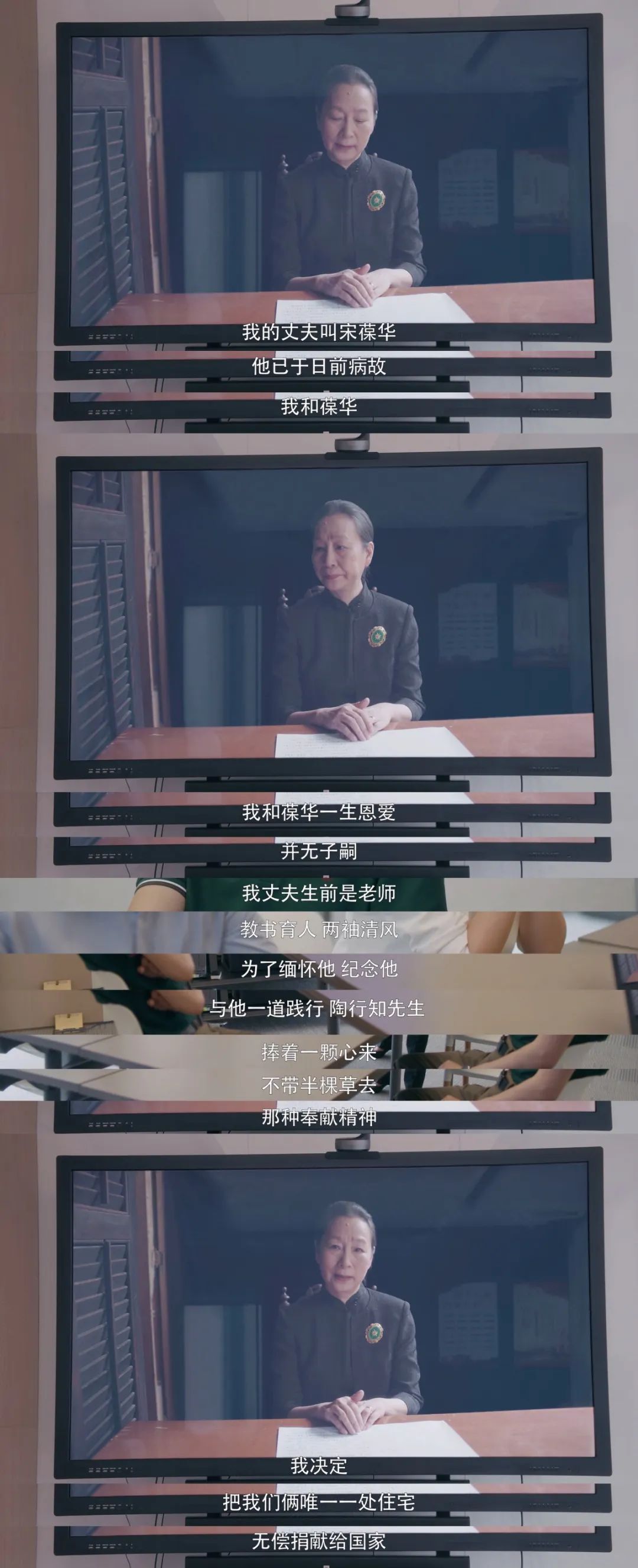 葬礼后,江奶奶把房子无偿捐给了国家。“我和葆华一生恩爱,并无子嗣。我丈夫生前是老师,教书育人,两袖清风。为了缅怀他,纪念他,与他一道践行陶行知先生‘捧着一颗心来,不带半棵草去’那种奉献精神,我决定,把我们俩唯一一处住宅无偿捐献给国家。”