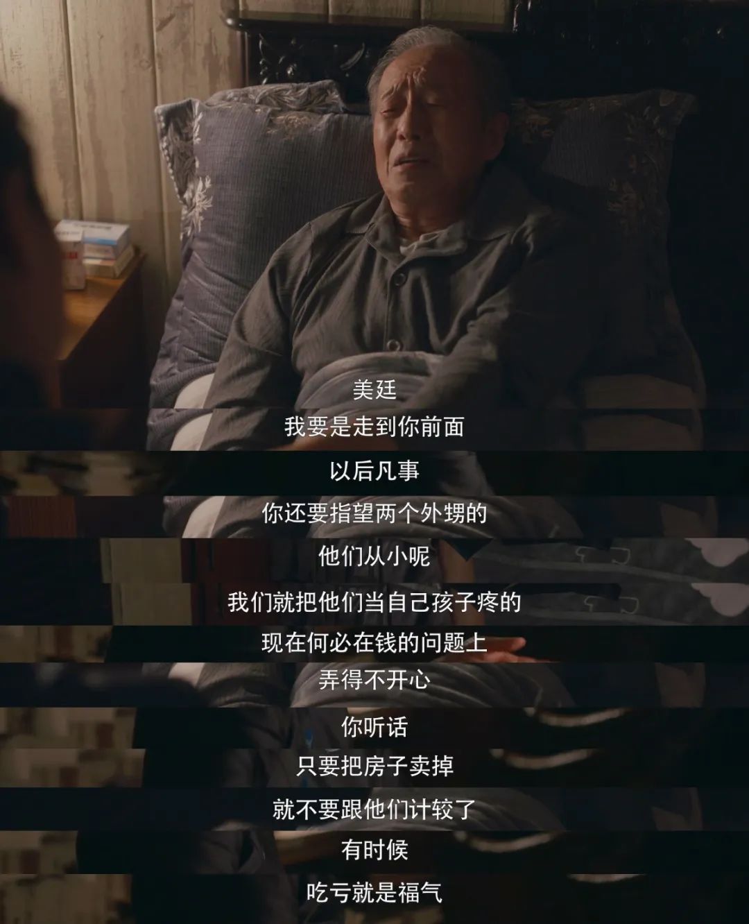 他知道自己剩下的日子不多了,一定要赶紧把美廷未来的生活安置妥当才能放心。在卖房子这件事上,两个外甥想要占便宜多分钱,他劝她不必争,毕竟以后的日子还要指望他们。连她的后路,他都考虑万千。“你听话,有时候吃亏就是福气。”
