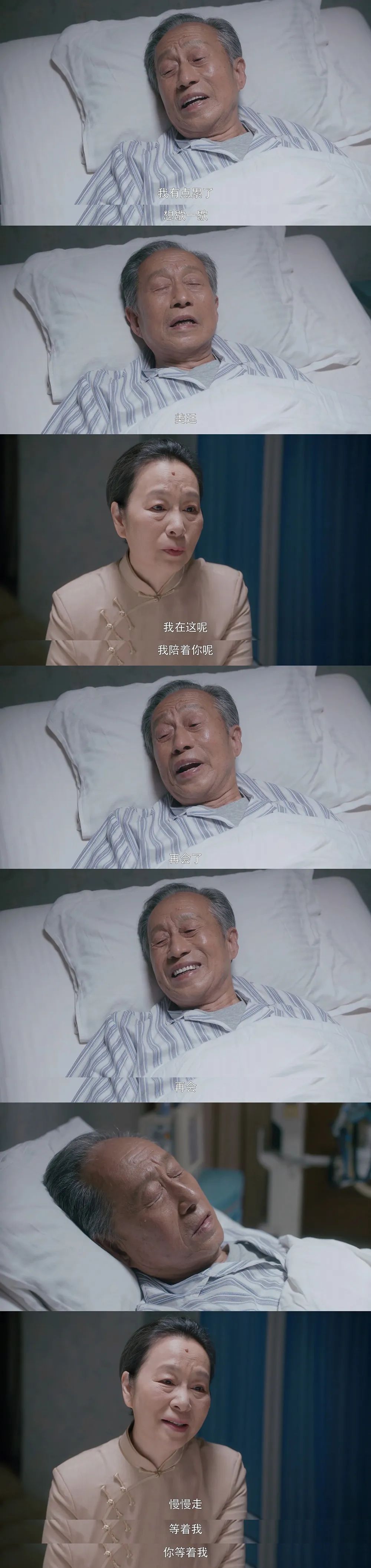 宋爷爷逐渐失去意识,嘴里却还在不断地呼唤着“美廷”的名字。可一听到美廷的声音,他又强撑着意识睁开双眼,跟她好好道个别。“再会了,再会。”