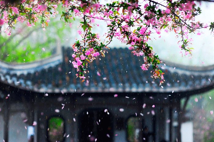 电闪雷鸣,春雨不再潇潇已是落花知多少了