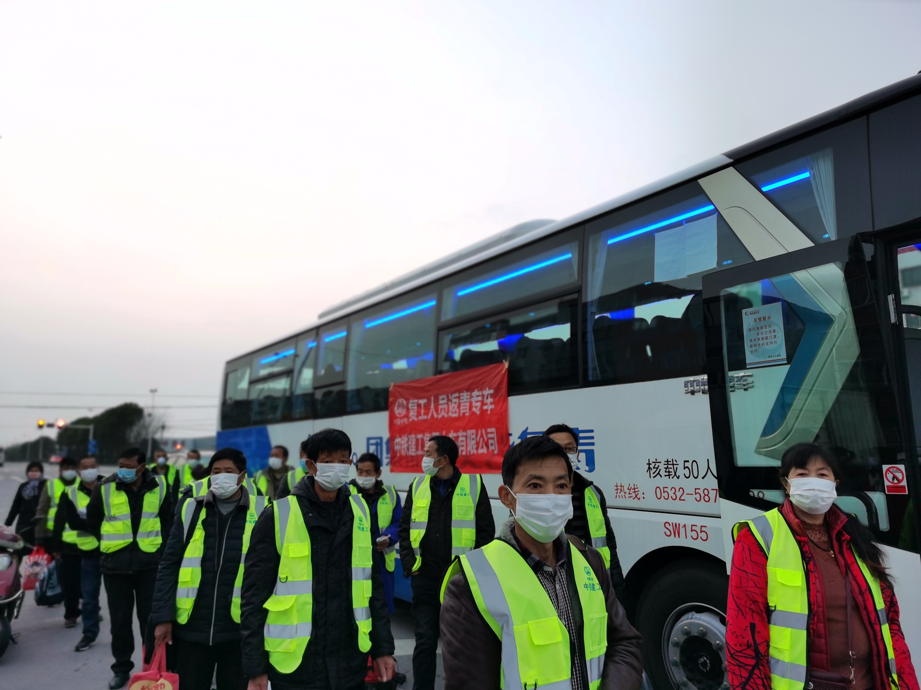 指导施工企业采用“点对点”包车形式,加强与青岛公交文旅集团的通力合作,安排持有“健康证明”的省外工人搭乘复工复产直通车分批次返青。严格执行错落座次、定时消杀、定点测温要求,保障直通车疫情防控精准到位。除富力总部基地工程外,日前,青特西山项目也安排直通车,从安徽、河南分批接回工人160名。