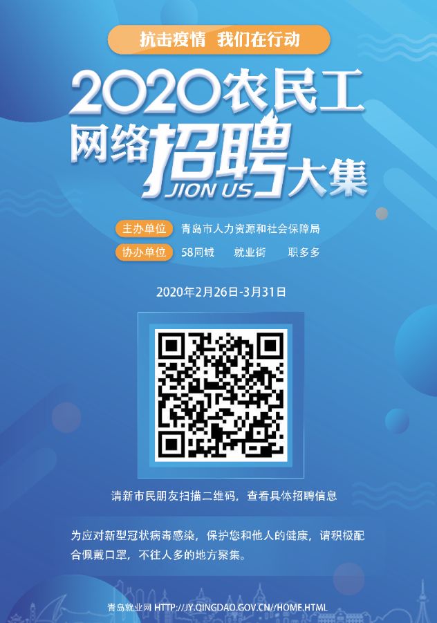 为安全妥善解决疫情防控期间企业用工和农民工就业问题,流亭街道按照“外防输入、内防反弹”的原则,搭建“线上”用工供需平台,农民工通过手机扫码便可赶招聘“大集”。通过企业包联人员摸排企业用工信息,将收集到的岗位需求统一汇总,通过社区微信群、微信公众号等进行发布,在社区疫情防控检查点、小区门口及租赁户聚集的地方张贴海报,进行“线上”招聘,目前已先后发布各类岗位信息3000余条。