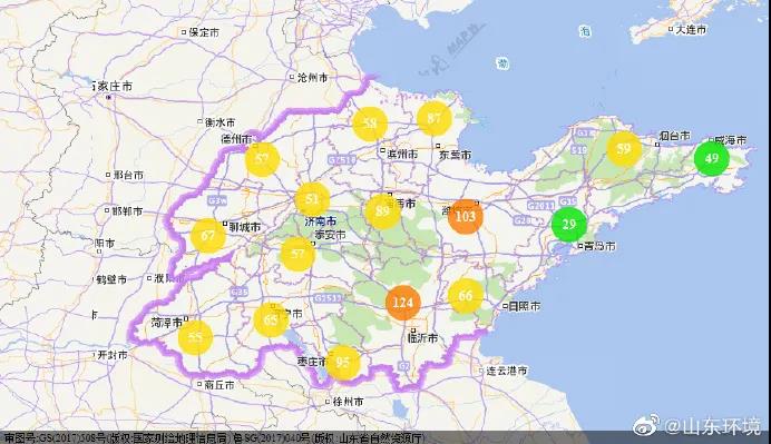 500hpa等高线稀疏,地面受低压影响,受偏南气流控制,扩散条件一般。预计,半岛、鲁南沿海地区以良为主,其他地区以良至轻度污染为主,首要污染物为PM10和PM2.5。