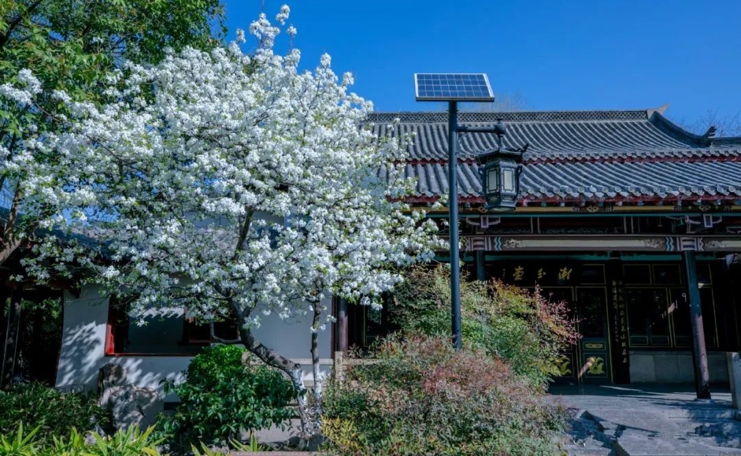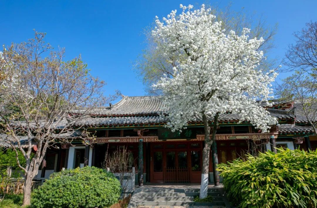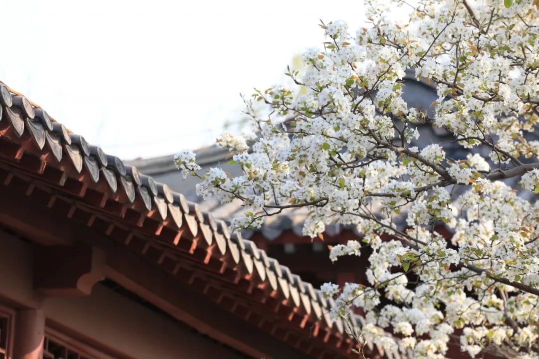 “梨花如静女,寂寞出春暮。春色惜天真,玉颊洗风露。”四月的春风吹进百脉泉公园,吹开了龙泉寺内的一树梨花开。