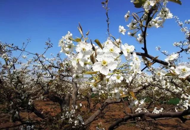 梨花盛开时节,阳信的万亩梨园将披上洁白雅致的素装,棵棵梨树上缀满耀眼的白花,梨园里荡漾着美的韵味,在春风里摇曳的梨树枝条,仿佛向人们招手欢迎。