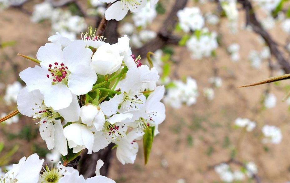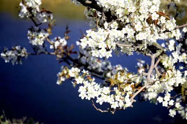 梨花开放时如堆雪铺玉,梨园就像是被浩渺的白云淹没。远远望去,都是白色的海洋。这白花朵朵的世界宛若点点白雪挂满枝头,看到这里,不免又让人回味起冬季的雪景。
