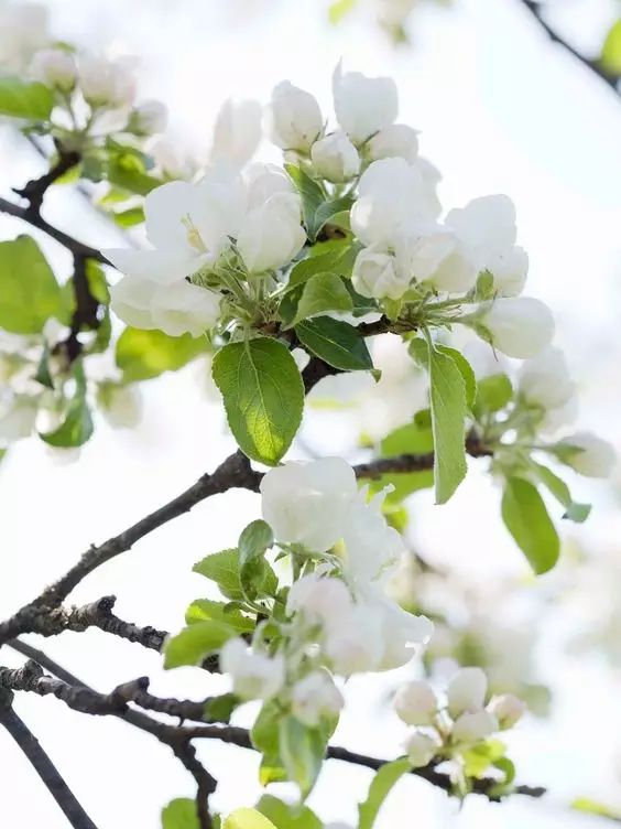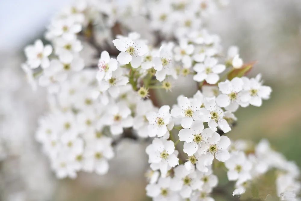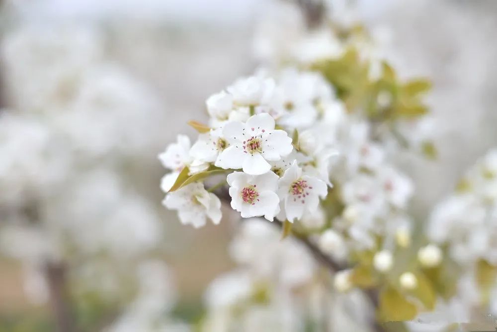 洁白的梨花花语是“纯真”,代表着纯粹美好的爱情。它带着淡淡的清香,犹如压在树上的白雪,美醉了春天…