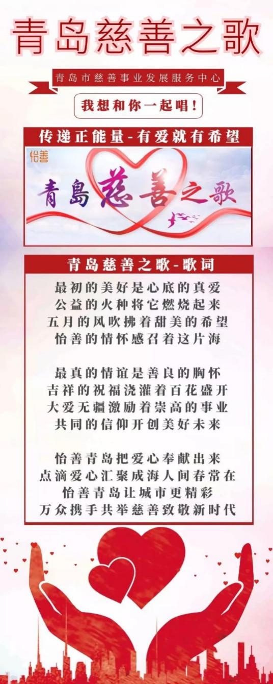 《青岛慈善之歌》由青岛市慈善事业发展服务中心精心打造,集中宣传展示了青岛在慈善事业发展和促进方面的工作与成效,带有浓厚的“怡善青岛”特色。歌词中,“五月的风”是青岛的鲜明印记;“甜美的希望”“善良的胸怀”“怡善青岛”“大爱无疆”等是岛城公益慈善服务的核心价值;在慈善事业发展的路上,我们只要“点滴爱心汇聚成海”,就可以“万众携手共举慈善”。