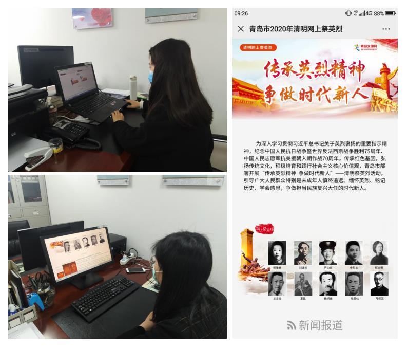 2020年清明节期间,值此全国各族人民共克时艰抗击疫情的关键时刻,为弘扬传统文化、传承红色基因,积极崇树崇尚英雄、缅怀英烈的良好风尚,不断增进热爱祖国、热爱人民、热爱中华民族的深厚情感,青岛市慈善事业发展服务中心党支部开展了“清明节铭记”网上缅怀革命先烈活动。