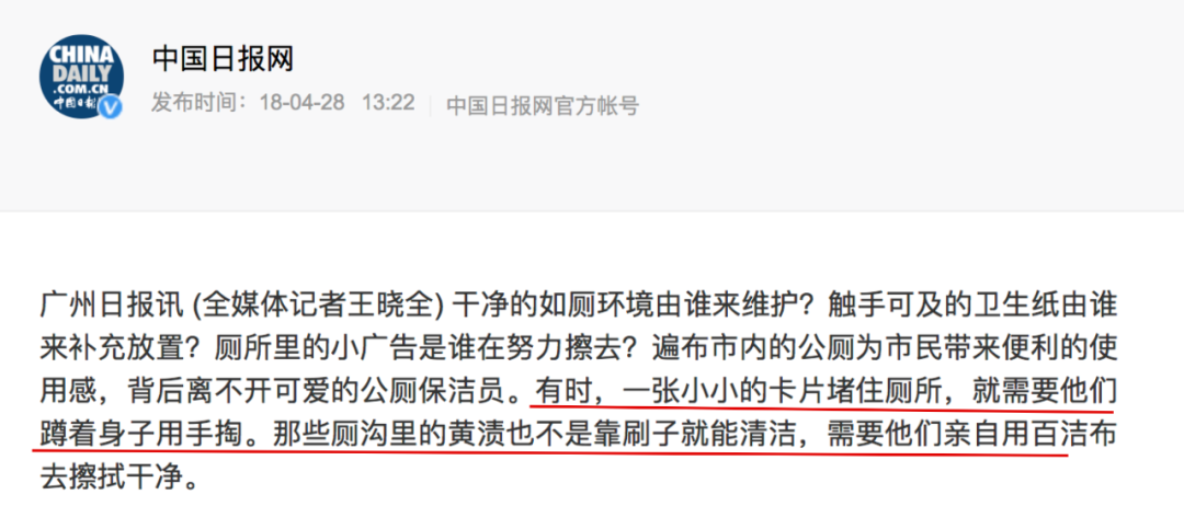我们能拥有方便又干净的如厕环境,离不开他们的努力。