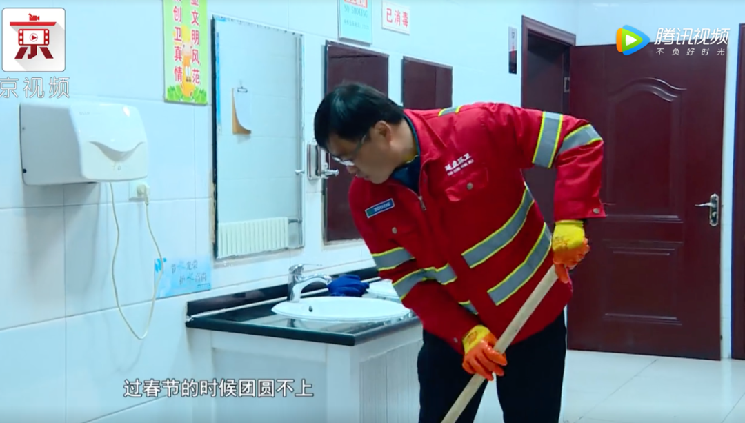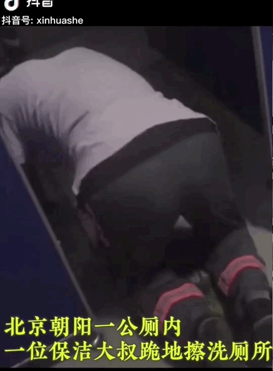 一位大叔,8年来一直像这样👇跪在地上,用抹布仔细擦洗厕所。