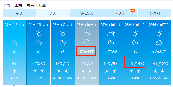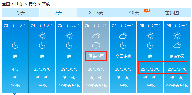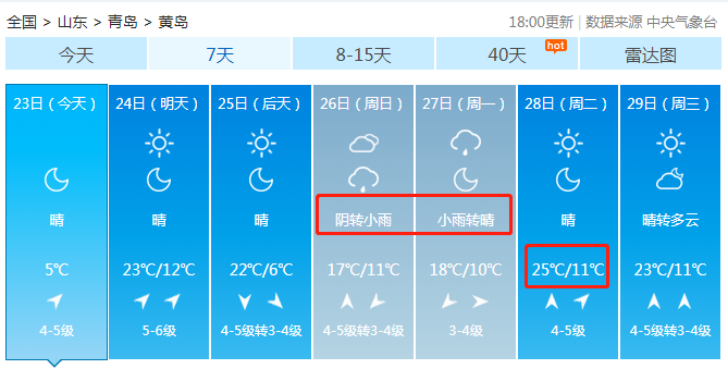 25日最低气温市区和沿海地区10~12℃,内陆地区最低8~9℃,25日白天最高气温全市18~22℃。