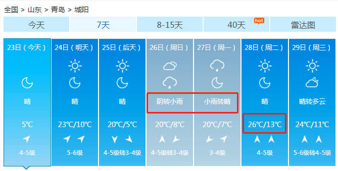 26日最低气温市区和沿海地区6~8℃,内陆地区最低4℃左右,26日白天最高气温市区和沿海地区16~18℃,内陆地区最高20℃左右。