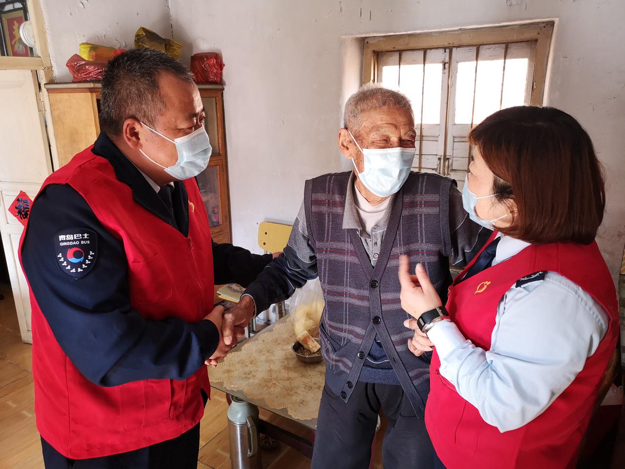 90后志愿者是朝气蓬勃,奋发有为,肩负民族未来希望的青年一代。五四青年节来临之际,青岛市慈善益站“怡善巴士”青岛公交崂山巴士第六分公司爱心团队的党团员志愿者孟珂、丁健、孙伟杰、张恒瑞在党支部书记董善杰的带领下,相约来到崂山区金家岭街道王家村社区探望结对的老人,为老人购买了新鲜鸡蛋、水果和老人爱吃的桃酥。