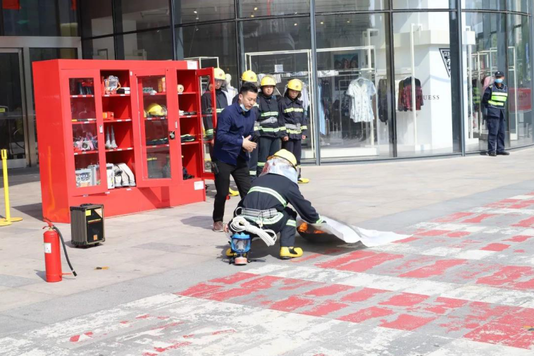 情景预设:当商场发生火灾时,消防队员第一时间赶到现场实施扑救。