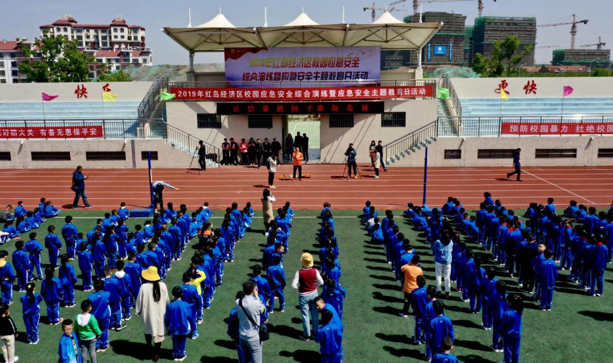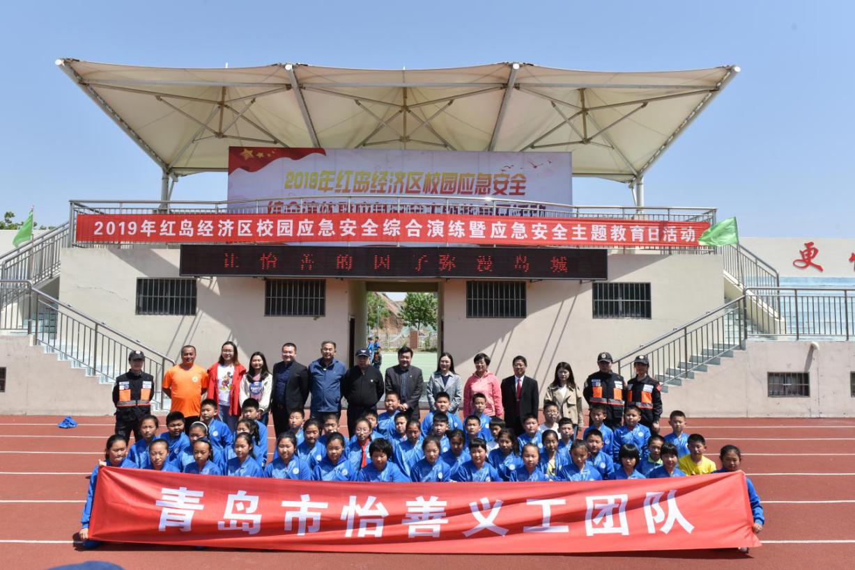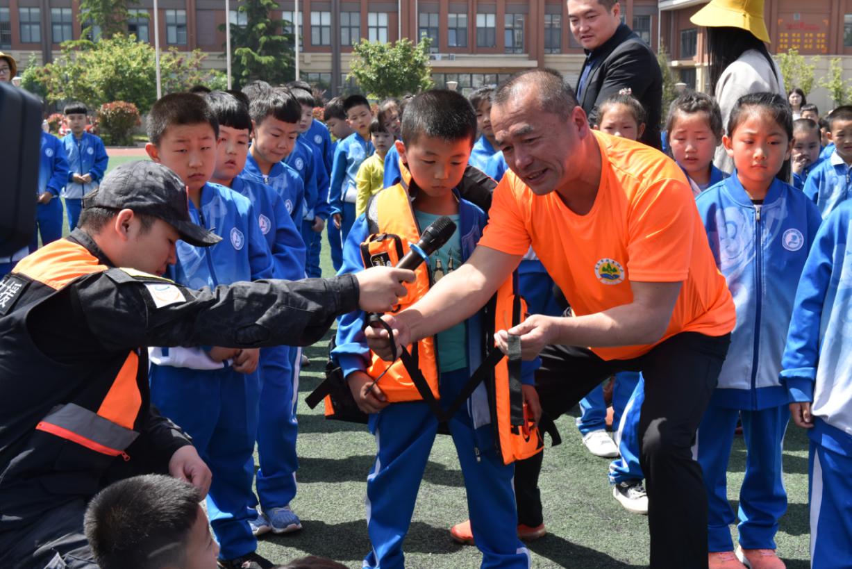 青岛市救生协会的志愿者为红岛中心小学的师生们