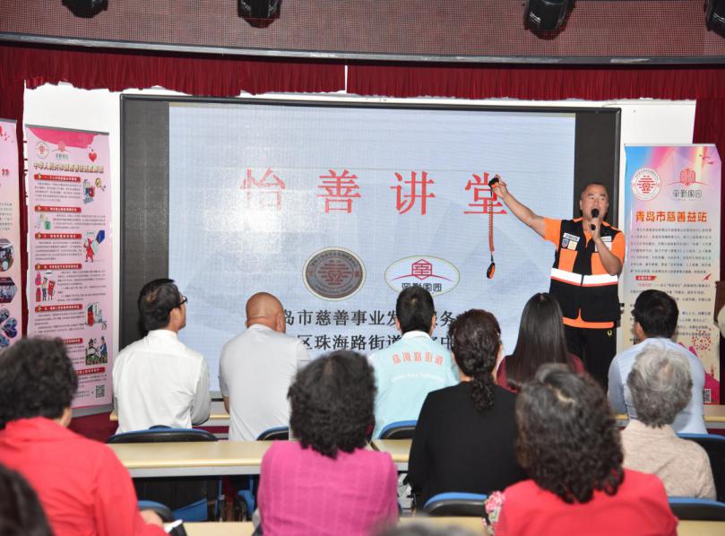 请分享“‘怡善讲堂’慈善服务”进市南区珠海路街道辛家庄社区党群服务中心活动场景