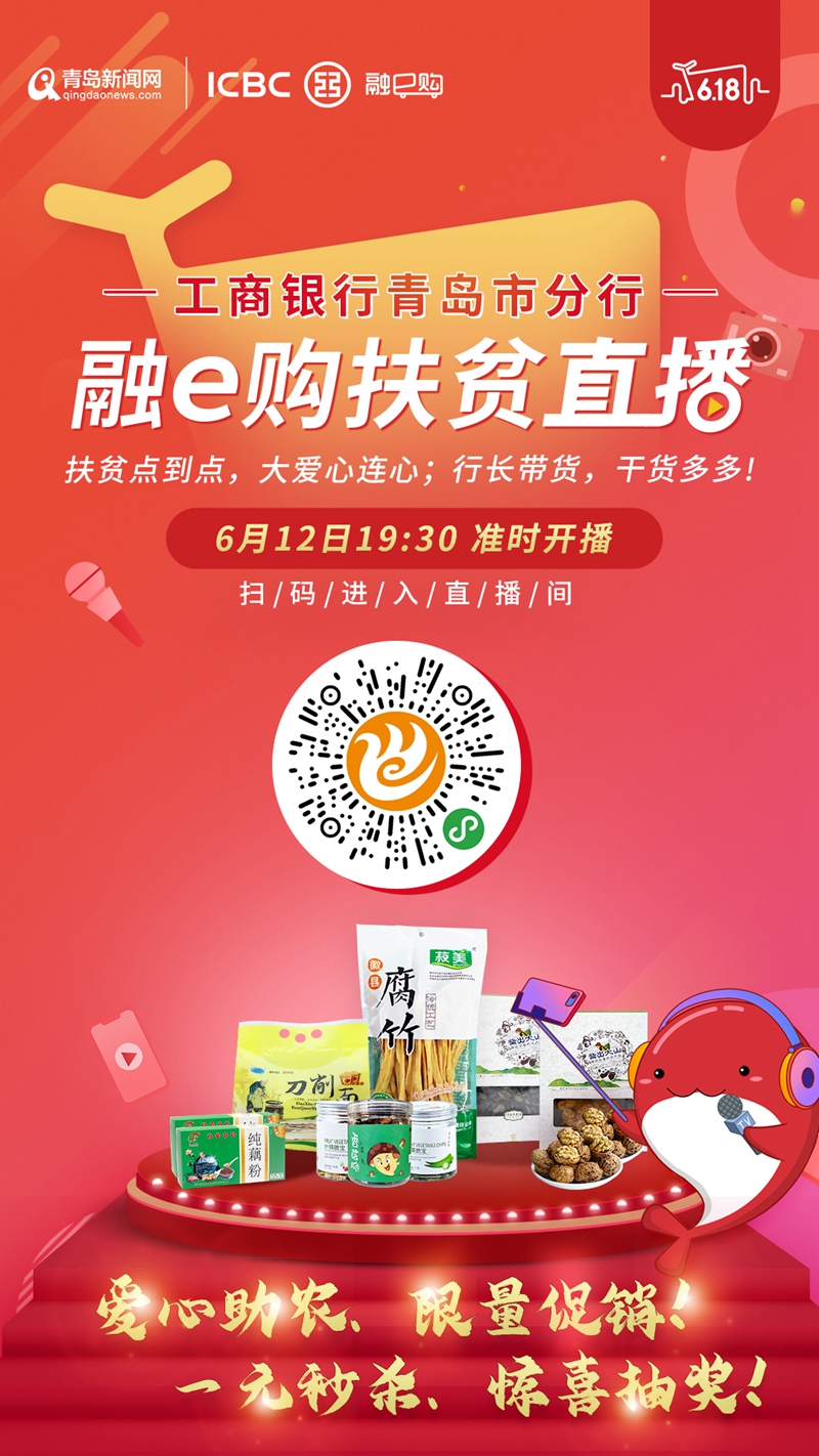 青岛新闻网6月11日讯 眼下,直播带货正成为扶贫助农新模式,这种模式不仅能够助力各地精准扶贫增收,同时还是破解农产品滞销、企业复工难等问题的有效手段。近年来,在扶贫助农的宗旨下,中国工商银行青岛市分行也在积极探索电商精准扶贫的新模式、新路径。