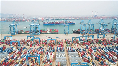 山东港口青岛港全自动化码头。