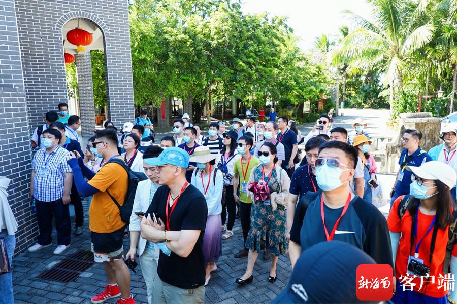 7月26日上午,抗疫英雄和记者编辑们参观琼海博鳌南强村。记者 李昊 摄