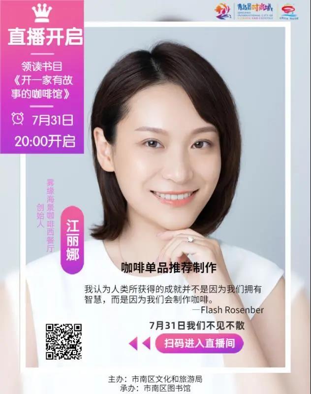 如果您也喜欢咖啡文化,我们特别设置了互动有惊喜环节,只要在直播中与领读者互动回复,现场拨打评论区的报名电话,就有机会领取免费学习制作咖啡的名额,先到先得,跟随江丽娜老师一起探索咖啡世界的奥秘。