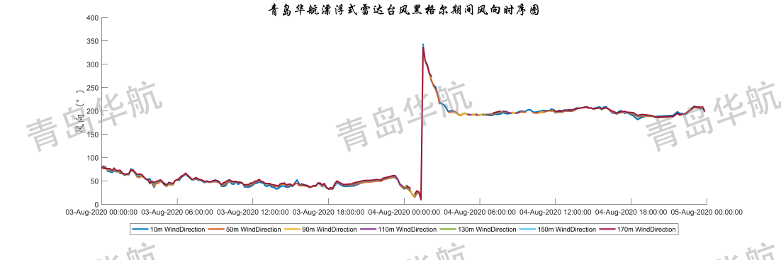 华航漂浮式激光雷达在台风“黑格比”经过期间的风向时序图