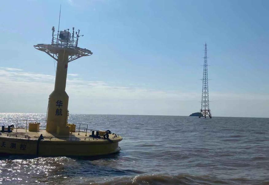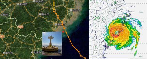 华航漂浮式激光雷达安装位置示意图(左)与台风强度天气雷达图(右)