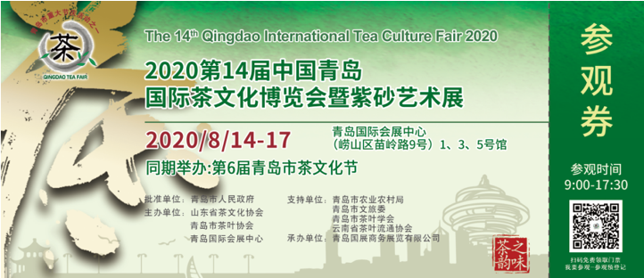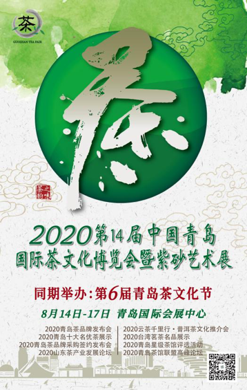 2020年第14届中国(青岛)国际茶文化博览会暨紫砂艺术展(以下简称:青岛市茶博会)于8月14-17日在青岛国际会展中心1、3、5号馆举办,本届茶博会由青岛市人民政府批准,山东省茶文化协会、青岛市茶叶协会、青岛国际会展中心主办,青岛国展商务展览有限公司承办。支持单位有青岛市农业农村局、青岛市文旅委、青岛市茶叶学会、青岛市茶艺师协会、青岛市收藏家协会紫砂专业委员会、贵州省安顺市农业农村局、贵州省凤冈县人民政府、贵州省凤冈县农业农村局、宜宾市人民政府、湖南安化黑茶收藏家协会、青岛国信信息科技有限公司、贵州黄果树惠农集团有限公司、四川酒业茶业投资集团有限公司等。青岛市茶博会旨在鼓励企业寻找茶叶贸易带来的商机,推广茶文化,以茶会友,集展示、鉴赏、交流、交易于一体,促进山东茶文化发展源远流长。