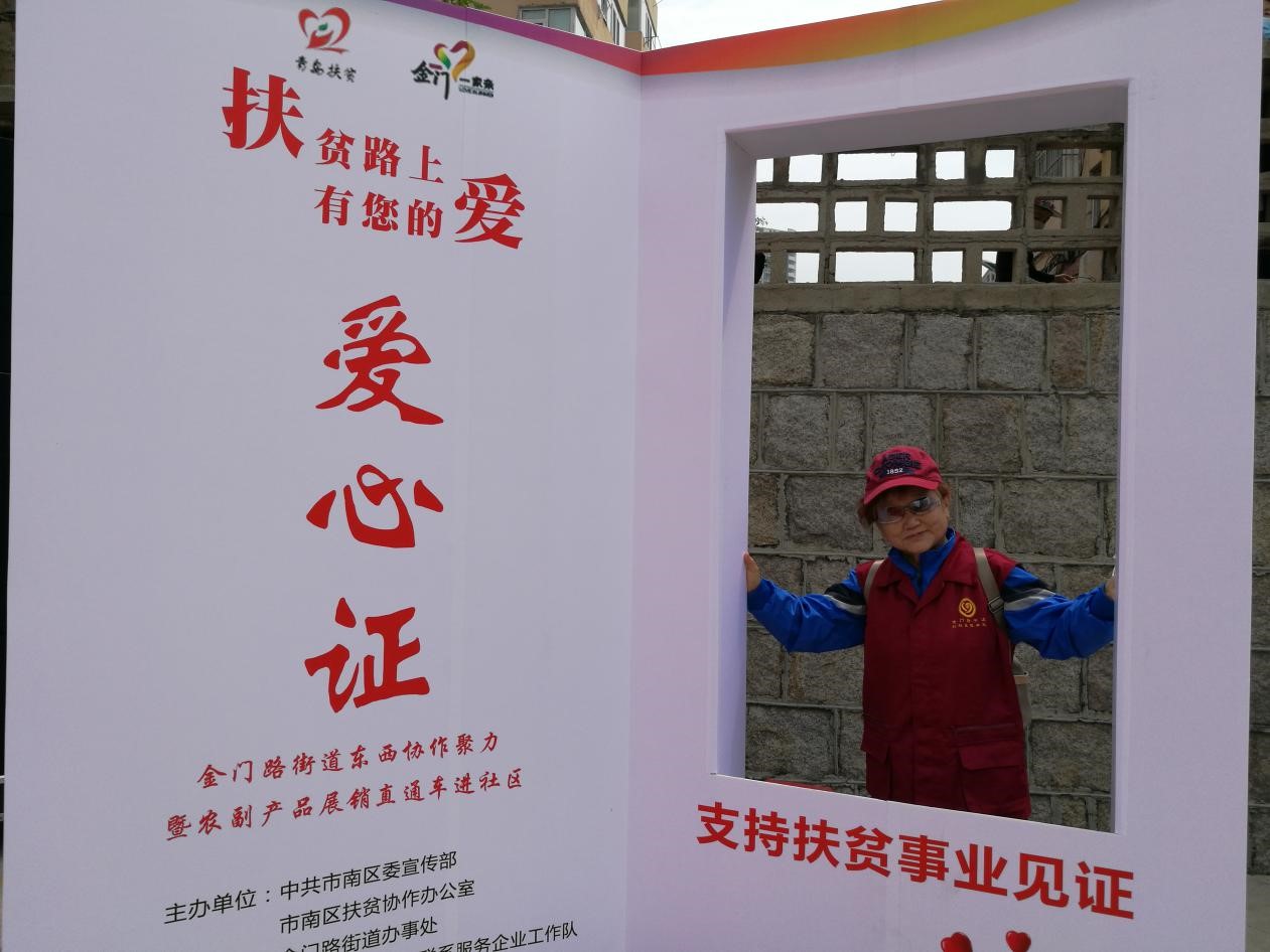 关心残疾人,献出一点爱。在4S在天山做志愿时我得到一个消息,天山有一个残疾人由于我们4s志愿者一直在帮助她,她很受感动。王主任说,您们可以写个情景剧,把4s帮助她的事演出来,于是我就有了要把这经历写下来的愿望,于是我前后三次到她家探望,每次我都是炒几个菜,陆续给她带了花生油、衣服等食品,每次她都是拉着我的手,陆陆续续讲着她的故事,每次我回去整理后,下次去我会带着我的手稿向她探讨,最终写出情景剧《残疾,幸福伴随我》,后又经人改为三句半,我们是党员志愿者,由我主演,每次的演出都是一次洗礼,每当唱起《唱支山歌给党听》时,我都是热泪涌眶,想象她那种渴望帮助、感恩党、感恩社会的情感。