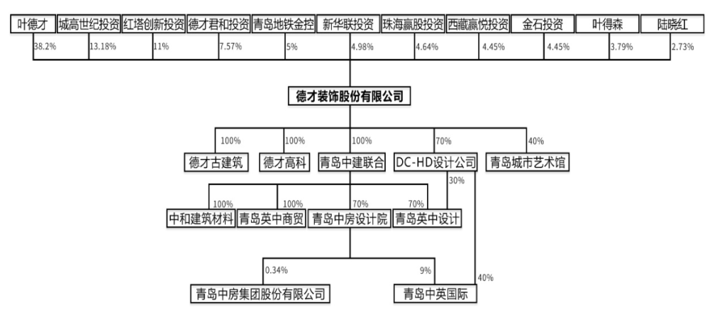 从公司的股权结构来看,公司的董事长、总经理叶德才直接持有公司38.20%的股份,并通过德才君和投资控制公司7.57%的股份,合计控制公司45.77%的股份,系公司实际控制人。