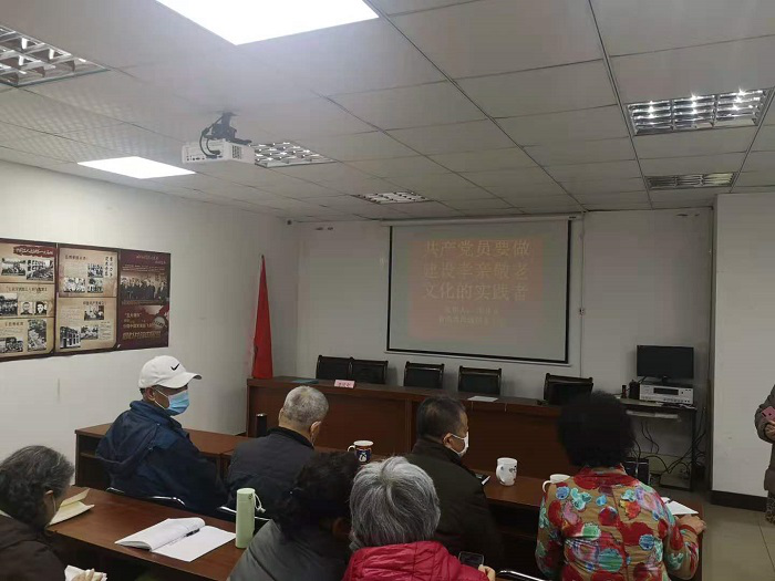 李庆年同志讲党课围绕孝亲敬老这个话题,结合学习党的十九届五中全会精神的体会,从孝亲敬老文化的民族特色与时代特征、当前建设孝亲敬老文化的重要意义和共产党员要做建设孝亲敬老文化的实践者三方面进行分享讲授。他的授课既有理论高度、阐述当前政策,又联系生活实际讲解历史典故,非常接地气。最后,他的授课总结落实到“要把弘扬孝亲敬老纳入社会主义核心价值观宣传教育,建设具有民族特色、时代特征的孝亲敬老文化。”强调了孝亲敬老文化,也就是我们要讲的孝道文化,做建设孝亲敬老文化的践行者。