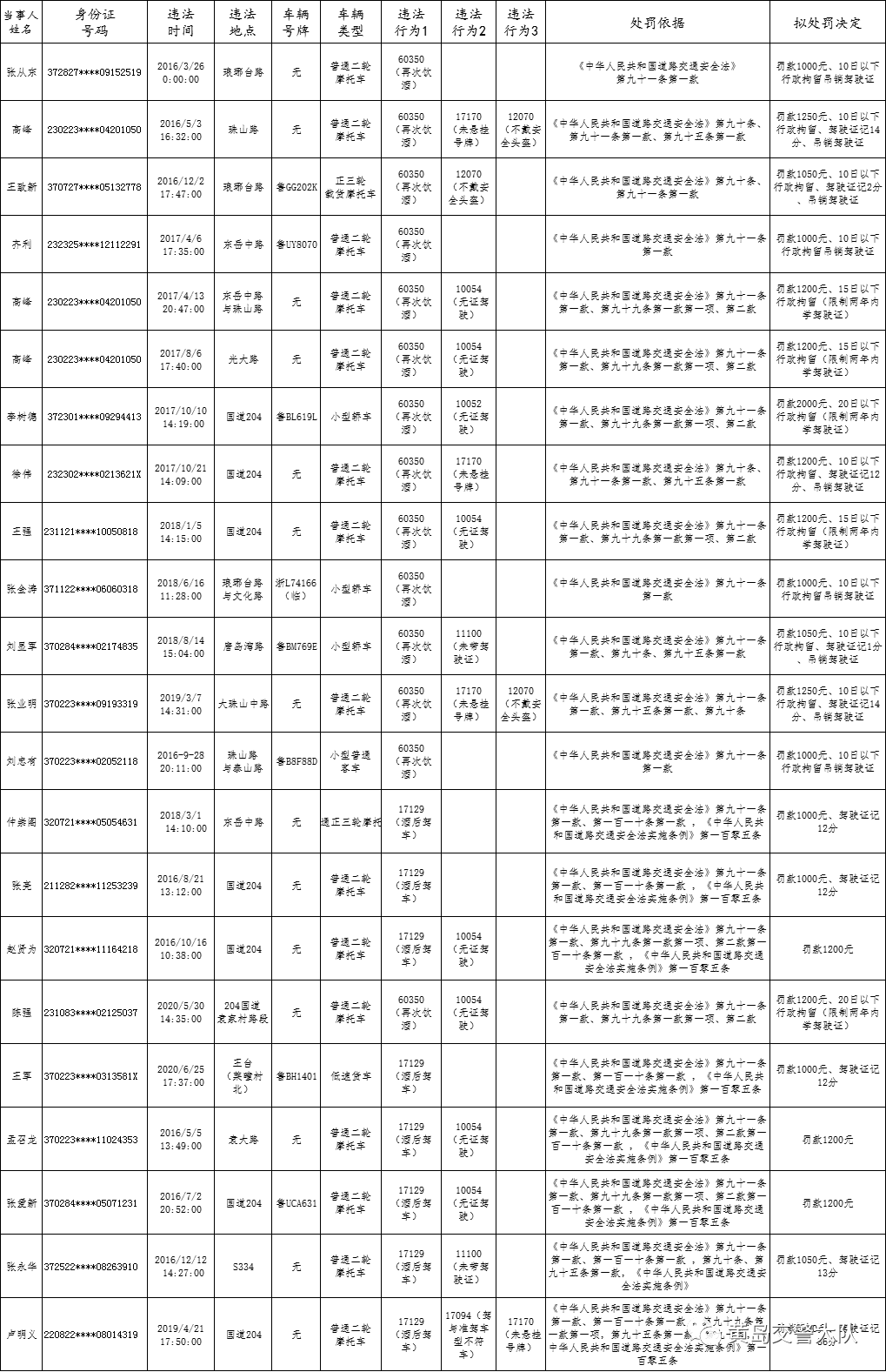 黄岛交警:对部分驾驶人拟作出处罚决定公告
