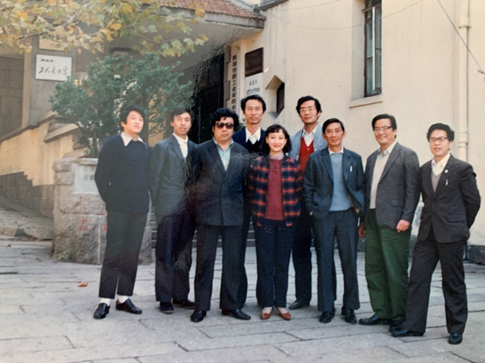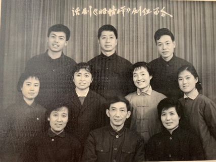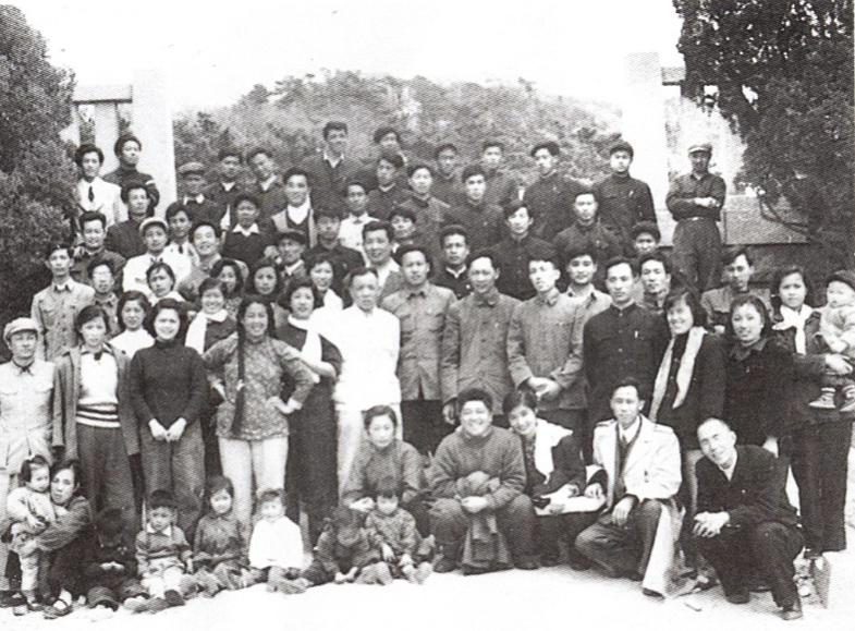 (1956年,青岛话剧团建团初期,来自北京中国青年艺术剧院的全体成员在中山公园拍摄的合影。)
