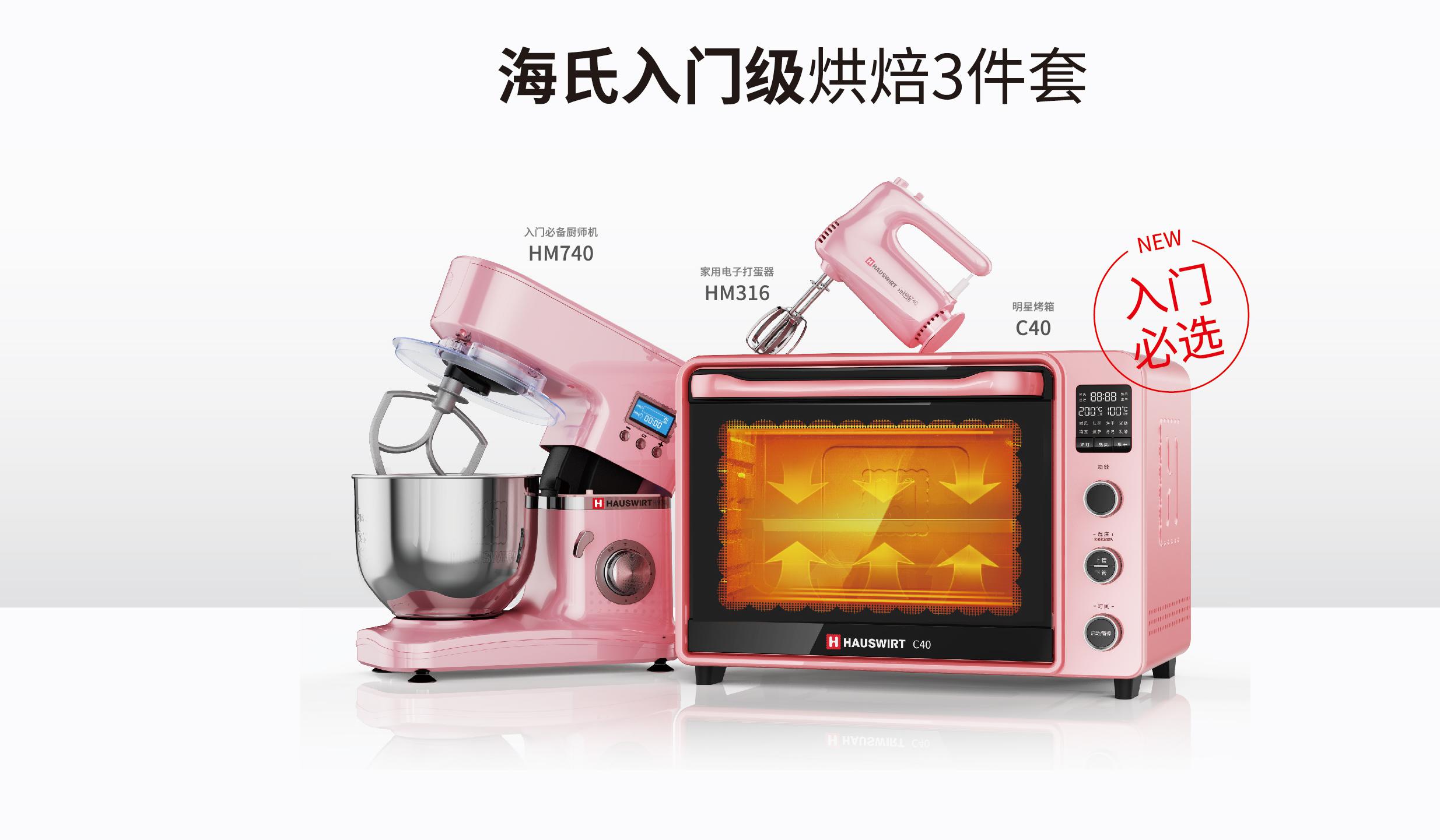 海氏的产品线非常丰富,目前品类已发展到十个左右,为了方便用户遴选适合自己的产品,海氏针对用户属性梳理出三条产品线,分别是入门级、玩家级和商用级,每个系列都搭配厨师机、烤箱、打蛋器、电子秤,各有其套系。
