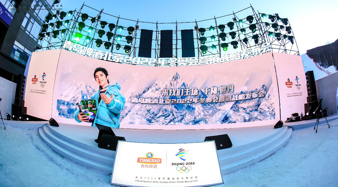 此次发布会在北京2022年冬奥会张家口赛区举行,银装素裹的冰雪世界中战鼓催征,让人格外期待这场令人心潮澎湃的超大赛事。在发布会现场营造出的“冰雪长城”上,青岛啤酒北京2022年冬奥会营销战略发布,“来我们主场干杯,世界”青啤冬奥主题形象片也现场首发。