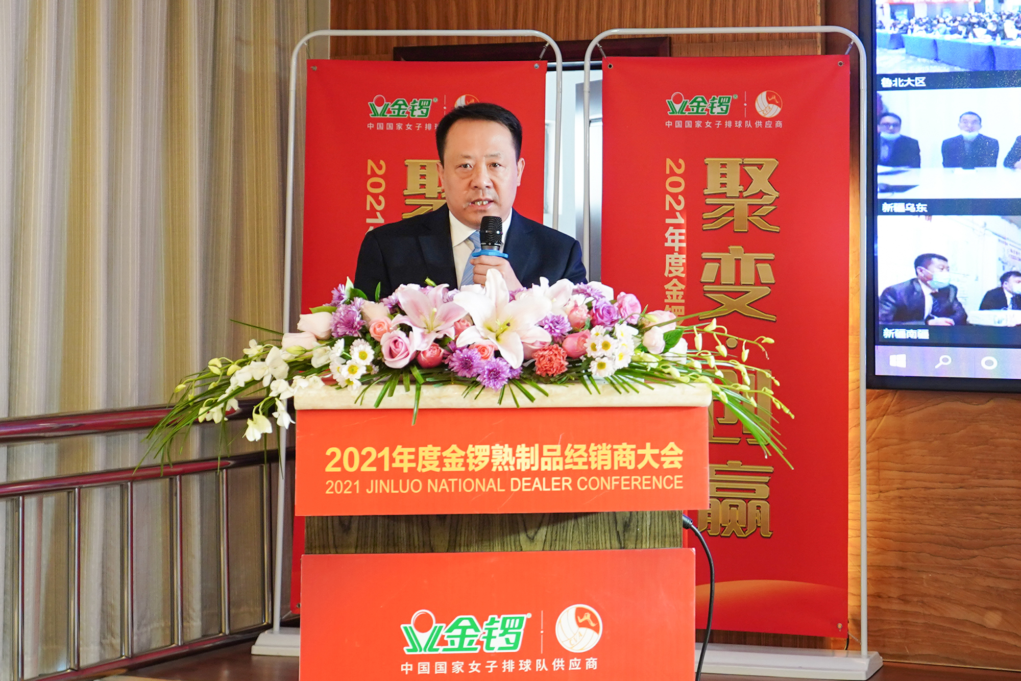 金锣集团副总裁杜庆夫就2020年度熟制品事业部销售工作进行了总结,他介绍到:在全体销售同仁和经销商、合作伙伴的共同努力下,金锣熟制品2020年超额完成年度销售目标,取得两位数成长,再创历史新高。随后,杜总部署了2021年度销售目标、任务,并详细解读了2021年金锣熟制品的市场区域策略和渠道策略,以及在客户管理、行销推广、组织提升、物流保障等方面的具体措施。同时明确提出,2021年将按照集团公司的战略规划指导思想,重点围绕市场拓展、客户平台搭建进行资源投入,打造有规模、专业化的客户队伍,强化客户体系的服务与管理;希望全体经销商客户,积极创新变革,与金锣共谋发展,建立现代的商贸公司体制,携手发展迎未来。
