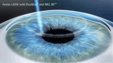 半飞秒手术也是角膜板层的一种激光手术,手术分两步,第一步用飞秒激光打开角膜,然后掀开角膜,制作一个角膜瓣,第二步用准分子激光消融一部分角膜组织,再把角膜瓣盖回去,改变角膜弧度从而矫正近视。