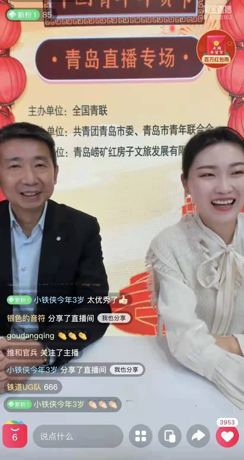 青岛新闻网1月25日讯(通讯员 吴晓菲)为组织各级青联委员积极助力实施乡村振兴战略、打通国内经济大循环,1月24日,由全国青联主办,青岛团市委、青岛市青联承办,青岛崂矿红房子文旅发展有限公司协办的“中国青年年货节”山东青年助农销售直播带货系列活动——青岛专场直播在崂山食品天猫旗舰店火爆开启。活动邀请了全国青联副主席、山东省青联常委、青岛市青联副主席,凯盛浩丰农业有限公司创始人、总经理马铁民;山东省青联常委、青岛市青联委员,山地自行车职业运动员张京坤;山东省青联委员、青岛市青联常委,青岛泉颂春农业科技有限公司技术总监林晶作客直播间,共同助力销售青岛本土特色产品。