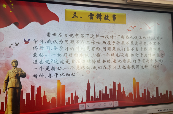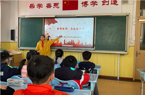同学们通过课件展示、事迹宣讲,共同了解雷锋的生平事迹,初步明确雷锋精神的内涵。