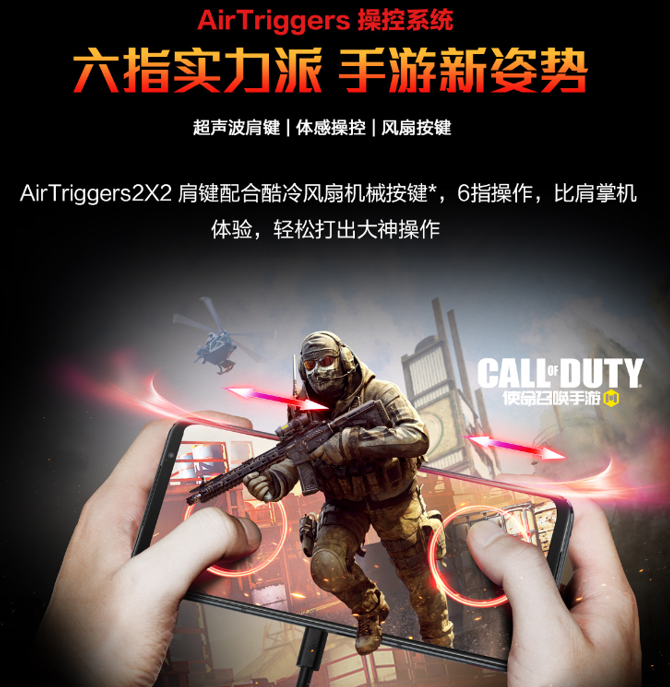本次发布的腾讯ROG游戏手机5Pro和幻影更是创造性地在手机背部增加操作区域,在背面设计了两个滑动“腰键”,加之标志性的AirTriggers超声波双肩键,为手游玩家解锁六指“新姿势”
