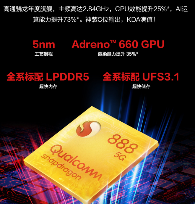 3.6400Mbps 18GB海力士LPDDR5内存、高通骁龙™888 5G移动平台