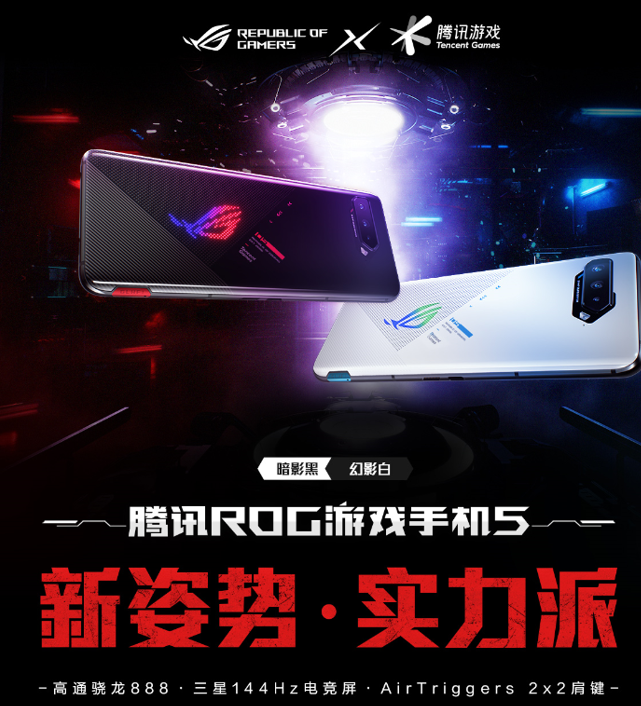 3月10日,“新姿势、实力派”腾讯ROG游戏手机5系列新品正式亮相。新品分为三个机型,包括拥有黑白两种配色的腾讯ROG游戏手机5、黑色配色腾讯ROG游戏手机5 Pro,以及白色配色的旗舰版腾讯ROG游戏手机5幻影。