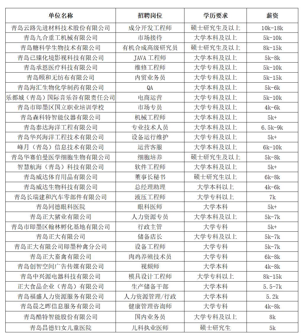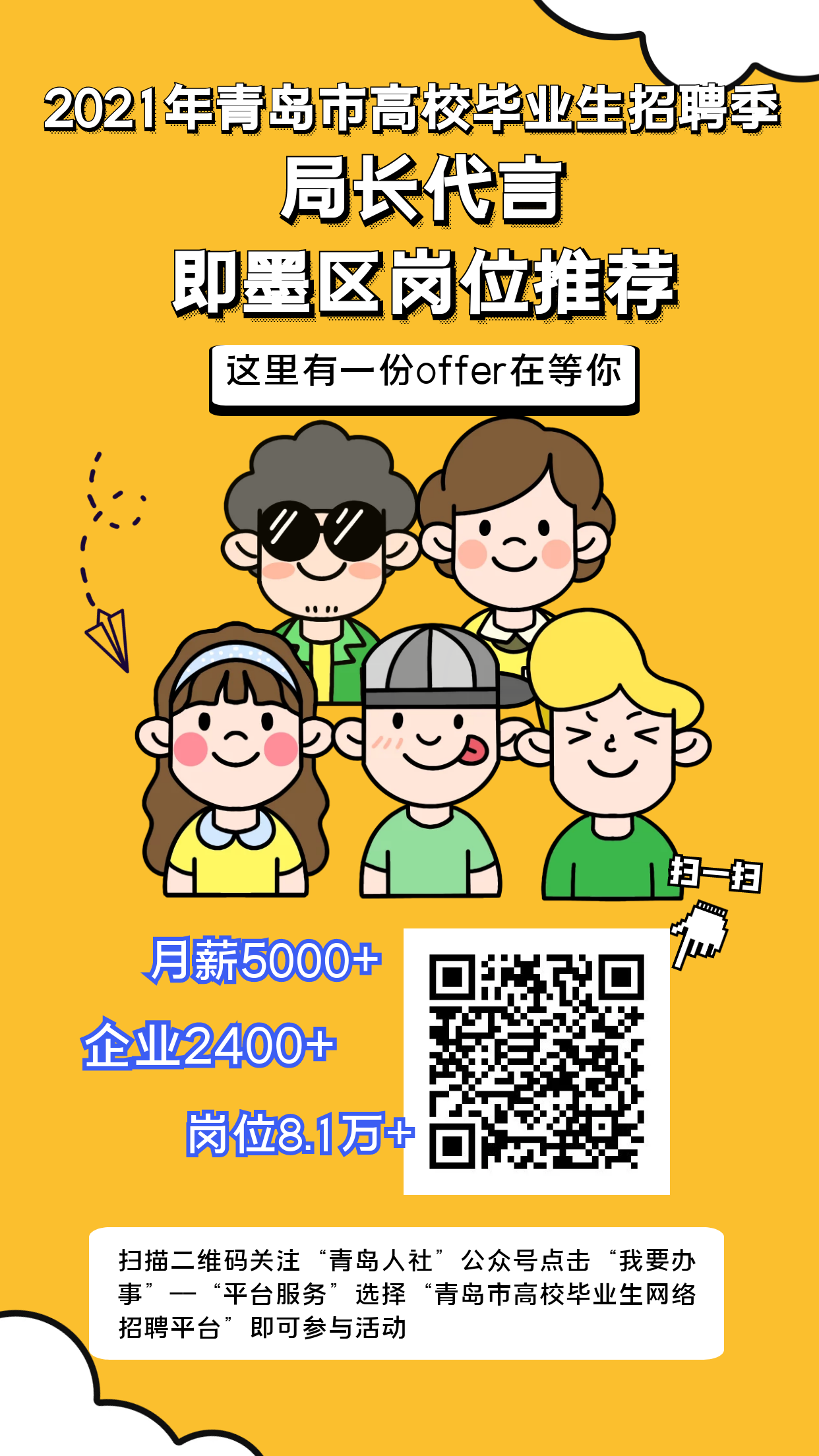 更多优质岗位可扫描二维码,关注“青岛人社”微信公众号,点击“我要办事”—“平台服务”选择“青岛市高校毕业生网络招聘平台”进入“区市优质岗位”寻找适合自己的岗位。