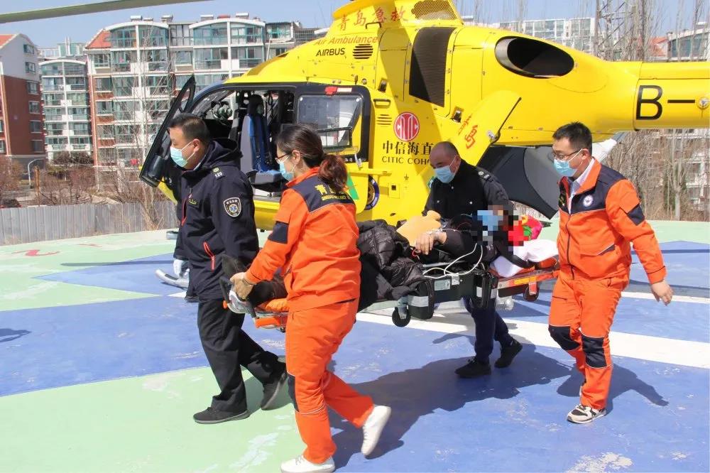 青岛市急救中心紧急启用急救直升机转运方案,评估病情、申请航线、规划线路、起降点选择、救护车接驳等事项快速推进,10:51搭载病人的直升机从威海市中心医院起飞,11:58抵达青岛急救中心停机坪,由救护车将病人接驳送往山东大学齐鲁医院(青岛),目前病人已顺利入住心外科。