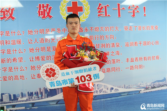 青岛新闻网4月7日讯(记者 丁淑华)4月6日下午,阳光和煦,春风徐徐。西海岸新区红十字会和山东港口青岛港联合举办了一场热烈的欢送仪式,为青岛市第103例、西海岸新区第20例、青岛港首例非血缘关系造血干细胞捐献者王乐赴济南捐献造血干细胞送行。